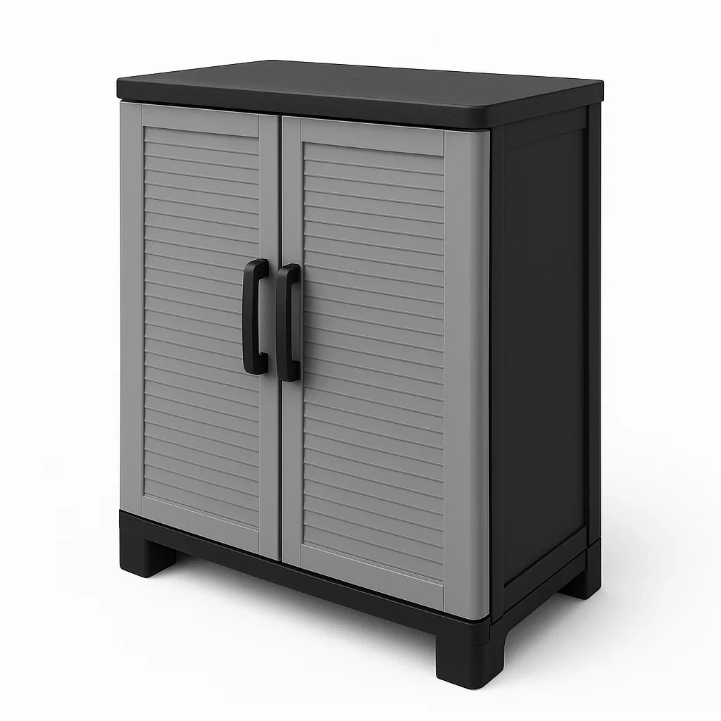 Armario de almacenamiento diseñado para uso exterior.
